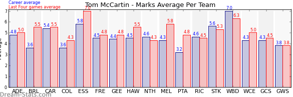 | Collingwood | 10 | 4.3 | 3.6 | 0.7 |