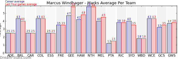 | Collingwood | 4 | 4.3 | 4.3 | 0.0 |