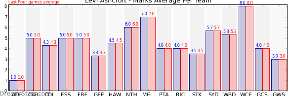| Team | Games | Last 4 Avg. | Overall Avg. | Difference |