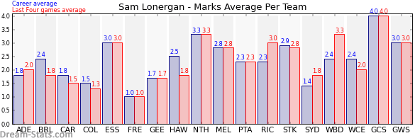 | Western Bulldogs | 7 | 3.3 | 2.4 | 0.9 |