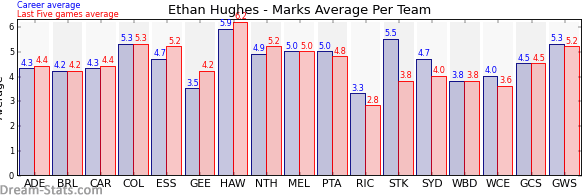 | Team | Games | Last 5 Avg. | Overall Avg. | Difference |