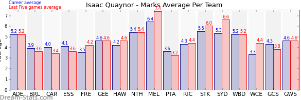 | Gold Coast | 7 | 3.8 | 4.3 | -0.5 |