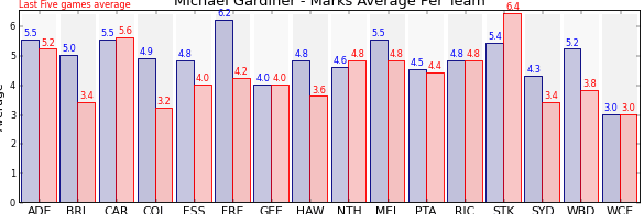 | Team | Games | Last 5 Avg. | Overall Avg. | Difference |
