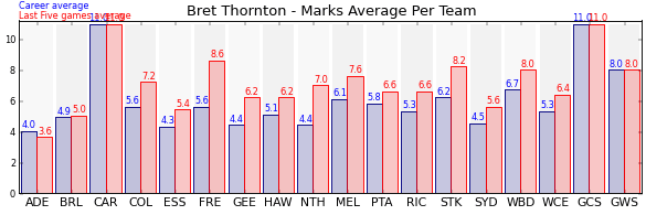 | Western Bulldogs | 11 | 8.0 | 6.7 | 1.3 |