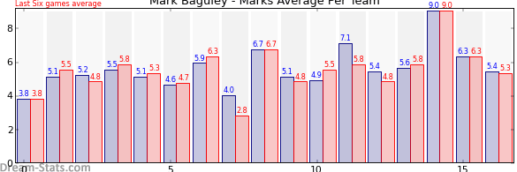 | Team | Games | Last 6 Avg. | Overall Avg. | Difference |
