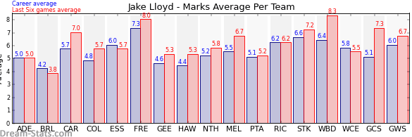 | Carlton | 16 | 7.0 | 5.7 | 1.3 |
