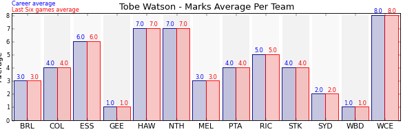 | Collingwood | 1 | 4.0 | 4.0 | 0.0 |