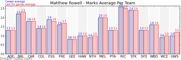 | Adelaide | 7 | 1.3 | 1.3 | 0.0 |