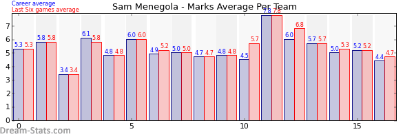 | Team | Games | Last 6 Avg. | Overall Avg. | Difference |