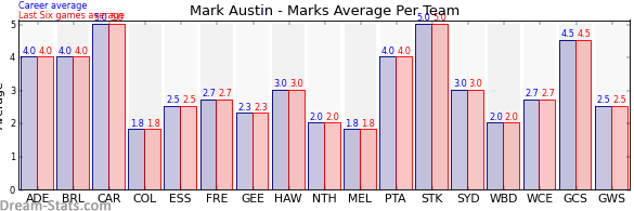 | Adelaide | 3 | 4.0 | 4.0 | 0.0 |
