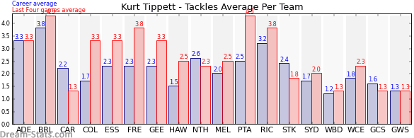 | Port Adelaide | 13 | 4.3 | 2.5 | 1.8 |