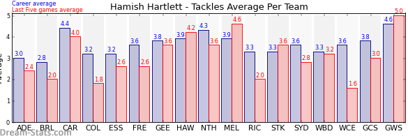 | Hawthorn | 14 | 4.2 | 3.9 | 0.3 |