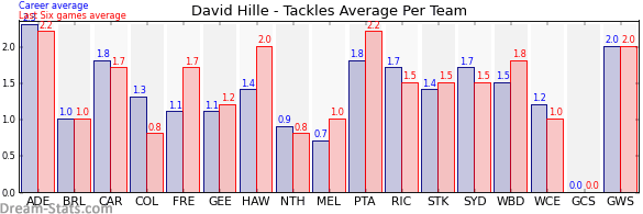 | Western Bulldogs | 13 | 1.8 | 1.5 | 0.3 |
