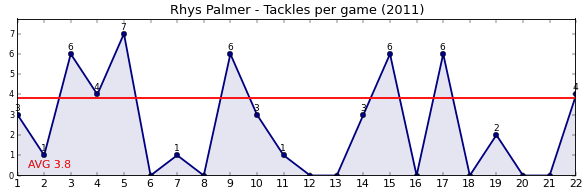 | Round | Opponent | Weekly Tackle | Cumulative Tackle | Competition Rank | Weekly Change |