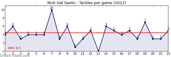 | Round | Opponent | Weekly Tackle | Cumulative Tackle | Competition Rank | Weekly Change |