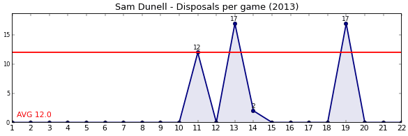 | Round | Opponent | Weekly Disposal | Cumulative Disposal | Competition Rank | Weekly Change |