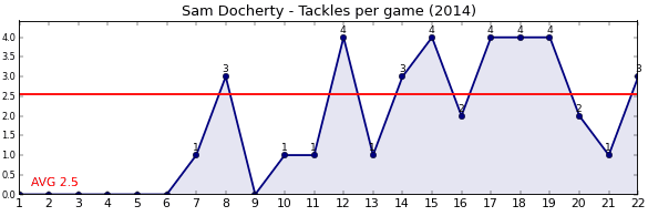| Round | Opponent | Weekly Tackle | Cumulative Tackle | Competition Rank | Weekly Change |