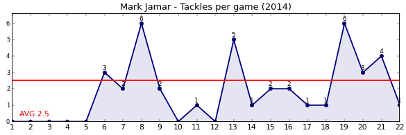 | Round | Opponent | Weekly Tackle | Cumulative Tackle | Competition Rank | Weekly Change |