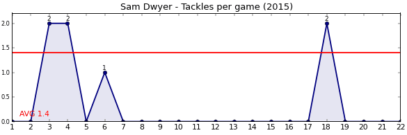 | Round | Opponent | Weekly Tackle | Cumulative Tackle | Competition Rank | Weekly Change |
