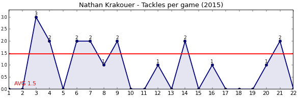 | Round | Opponent | Weekly Tackle | Cumulative Tackle | Competition Rank | Weekly Change |