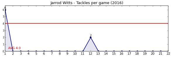 | Round | Opponent | Weekly Tackle | Cumulative Tackle | Competition Rank | Weekly Change |