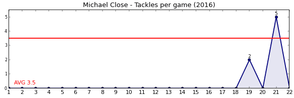| Round | Opponent | Weekly Tackle | Cumulative Tackle | Competition Rank | Weekly Change |