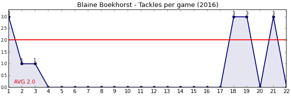 | Round | Opponent | Weekly Tackle | Cumulative Tackle | Competition Rank | Weekly Change |