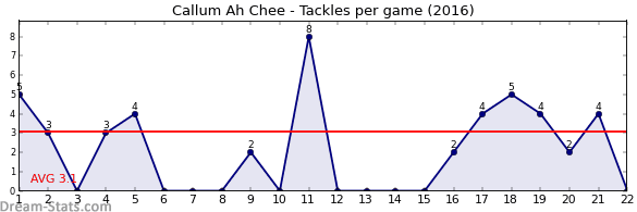 | Round | Opponent | Weekly Tackle | Cumulative Tackle | Competition Rank | Weekly Change |