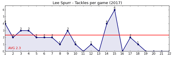 | Round | Opponent | Weekly Tackle | Cumulative Tackle | Competition Rank | Weekly Change |