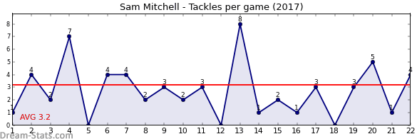 | Round | Opponent | Weekly Tackle | Cumulative Tackle | Competition Rank | Weekly Change |