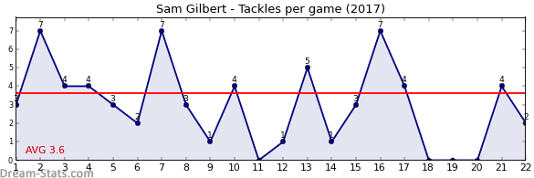 | Round | Opponent | Weekly Tackle | Cumulative Tackle | Competition Rank | Weekly Change |