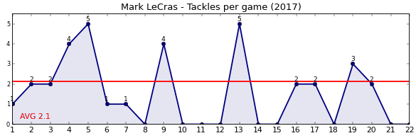 | Round | Opponent | Weekly Tackle | Cumulative Tackle | Competition Rank | Weekly Change |