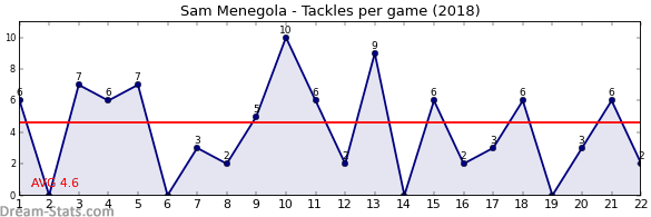 | Round | Opponent | Weekly Tackle | Cumulative Tackle | Competition Rank | Weekly Change |
