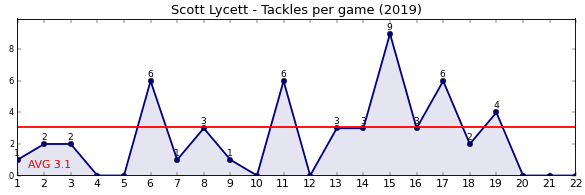 | Round | Opponent | Weekly Tackle | Cumulative Tackle | Competition Rank | Weekly Change |