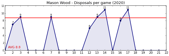| Round | Opponent | Weekly Disposal | Cumulative Disposal | Competition Rank | Weekly Change |