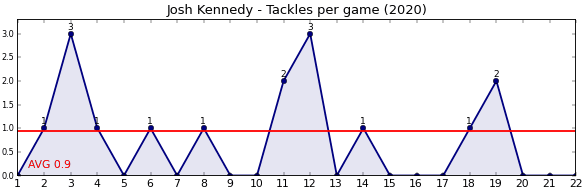| Round | Opponent | Weekly Tackle | Cumulative Tackle | Competition Rank | Weekly Change |