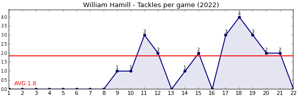 | Round | Opponent | Weekly Tackle | Cumulative Tackle | Competition Rank | Weekly Change |