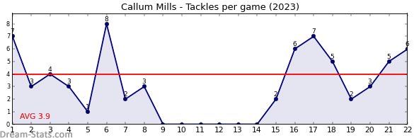| Round | Opponent | Weekly Tackle | Cumulative Tackle | Competition Rank | Weekly Change |