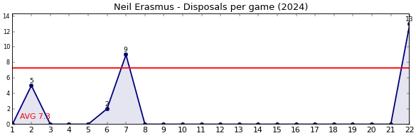 | Round | Opponent | Weekly Disposal | Cumulative Disposal | Competition Rank | Weekly Change |