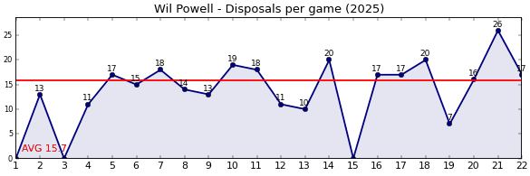 | Round | Opponent | Weekly Disposal | Cumulative Disposal | Competition Rank | Weekly Change |