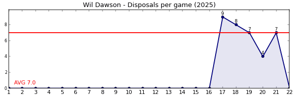 | Round | Opponent | Weekly Disposal | Cumulative Disposal | Competition Rank | Weekly Change |