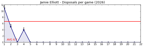 | Round | Opponent | Weekly Disposal | Cumulative Disposal | Competition Rank | Weekly Change |