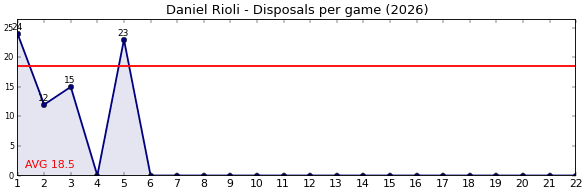 | Round | Opponent | Weekly Disposal | Cumulative Disposal | Competition Rank | Weekly Change |