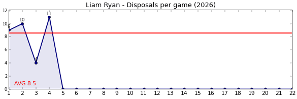 | Round | Opponent | Weekly Disposal | Cumulative Disposal | Competition Rank | Weekly Change |