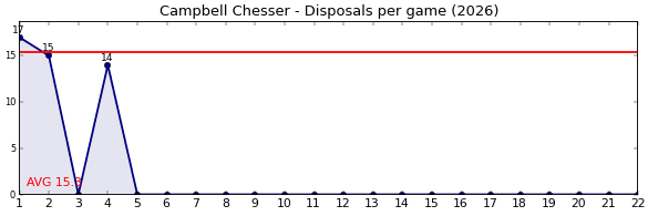 | Round | Opponent | Weekly Disposal | Cumulative Disposal | Competition Rank | Weekly Change |