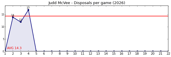 | Round | Opponent | Weekly Disposal | Cumulative Disposal | Competition Rank | Weekly Change |