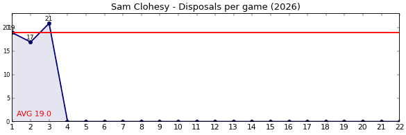 | Round | Opponent | Weekly Disposal | Cumulative Disposal | Competition Rank | Weekly Change |