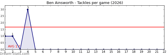 | Round | Opponent | Weekly Tackle | Cumulative Tackle | Competition Rank | Weekly Change |